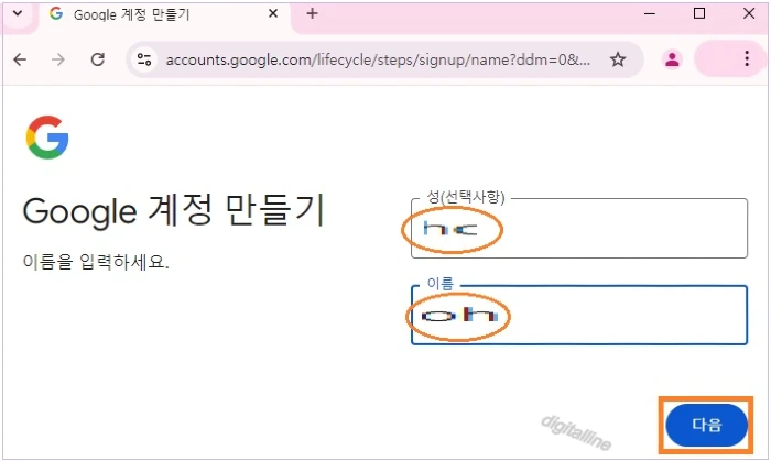 ③ 성, 이름을 입력하고 다음을 클릭합니다.