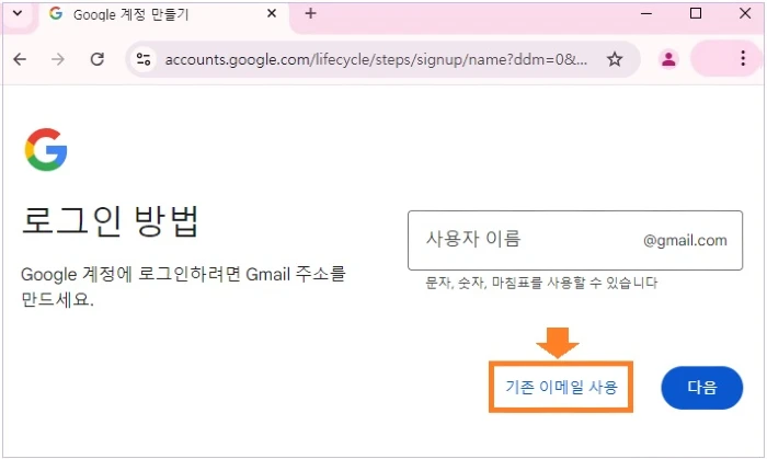 ⓢ 기존 이메일 사용을 클릭합니다.